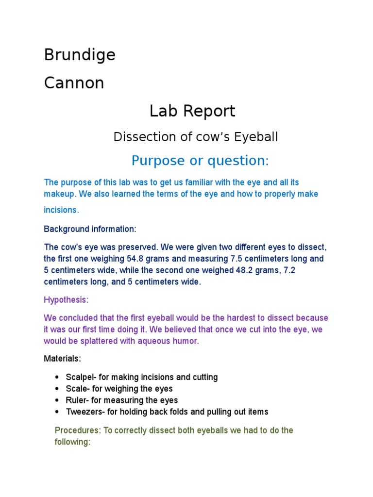• Preserved cow's eye • Forceps • Dissection probes • Dissection scissors • Dissection tray • Vinyl or latex gloves • Apron or tee-shirt • Paper towels • Plastic trash bag External features of the eye A. Locate the cornea, sclera, and optic nerve. a. The white part of the eye, the sclera, is a tough, outer covering Jul 30, 2014 - Cow Eye Dissection Diagram Labeled | Cow Eye