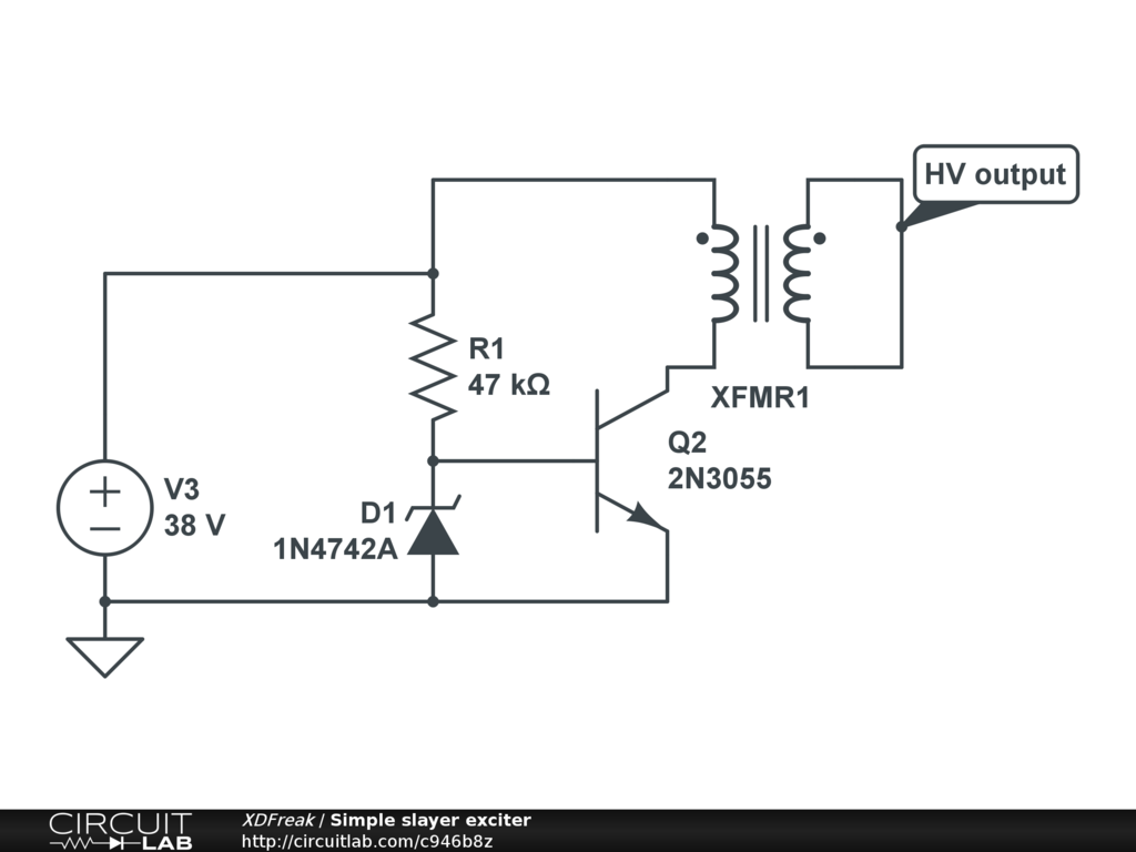 The circuit for the Slayer exciter is extremely simple . Tesla Coil Slayer Exciter Components. The components required to make a simple Tesla coil are as following: Power transistor TTC5200 or MJE3055 ... Make the circuit according to the given circuit diagram. Circuit Diagram. This circuit attempts to address a couple of the issues with the slayer exciter: 1.) The transistor in the slayer exciter dissipates a lot more heat than necessary due to the fact it spends a lot of time in the active mode as opposed to the saturated mode. 2.) It can be difficult to get enough (or the right) current gain for the slayer exciter ... A Slayer Exciter is an air-cored transformer that steps up a very low DC voltage to a very high AC voltage. This creates an electromagnetic field around the coil that is capable of lighting up fluorescent and neon light bulbs. It is fairly similar to a Tesla Coil. The Slayer Exciter was the brainstorm of Dr. Stiffler and GBluer a few years ago.