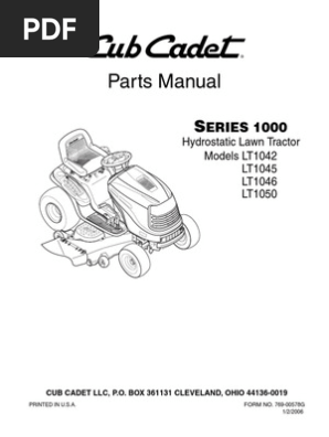 Command Engine Head Valve Breather diagram and repair parts lookup for Cub Cadet LT 1050 (13AQ11CP709) - Cub Cadet 50" Lawn Tractor (2007 & Before) Order Status Customer Support 512-288-4355 My Account. Login to your PartsTree.com to view your saved list of equipment. Cub Cadet Lt1050 Parts Diagram. Printed In USA. ILLUSTRATED PARTS MANUAL. Model Series — Hydrostatic Lawn Tractor. Models LT LT LT LT Find Cub Cadet Parts for Cub Cadet lawn mowers and other power Order replacement parts or download a copy of your machine's operator's manual. Cub Cadet LT Diagrams and Manuals.