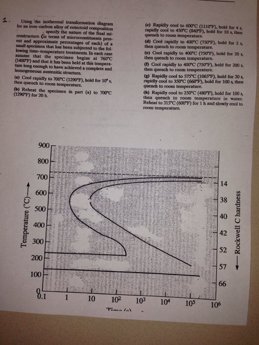 Using the isothermal transformation diagram for an ironcarbon alloy of eutectoid composition figure 1 specify the nature of the final microstructure in terms of microconstituents present and approximate percentages of each of a small specimen that has been subjected to the following timetemperature treatments.