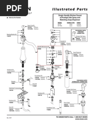 Moen faucet parts diagram. If your faucet's stream seems to be dwindling, it might be time for a new faucet aerator. If you need a faucet hose or a faucet sprayer, we have those, too. Looking for specific brand parts to replace? Delta faucet cartridges, Delta faucet aerators, Moen faucet aerators and more are available to ensure your sink is outfitted with the right ... More Buying Choices. $18.48 (20 used & new offers) 150259 Pull Down Hose Kit For Moen Faucet Replacement Part 150259 Hose, Moen Kitchen Faucet Replacement Part 187108, Reflex Moen Pull Down Hose, 68" Quick Connect Hose. 4.4 out of 5 stars. Illustrated Parts TO ORDER PARTS CALL: 1-800-BUY-MOEN www.moen.com Order by Part Number Rev. 6/11 CHATEAU® Single-Handle Kitchen Faucet MODEL FINISH 7425 4" Supplies w/o Spray Chrome 7425BC 4" Supplies w/o Spray Brushed Chrome Let us help you find parts for your MOEN product to keep it working properly. Identify, troubleshoot and solve your faucet needs. Get Product Help.