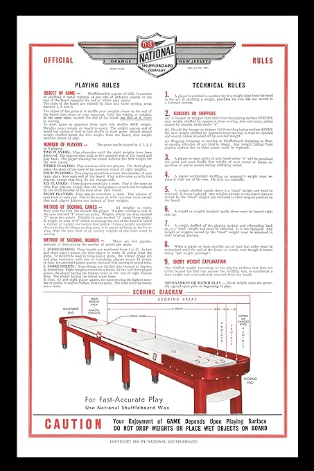 It is acceptable to use shuffleboard powder / wax / sand… only between rounds. Please see the diagram for an example of scoring. Alternate Games: Bocce. Very similar game to Curling, except any spot on the table can be chosen, beyond the foul line. Chose a spot on the table that is easily recognizable and won't move when hit (painted numbers)