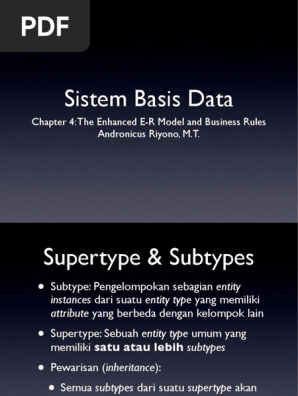 Sistem Basis Data Chapter 4 The Enhanced E R Model And Business Rules Andronicus Riyono M T Pdf Free Download
