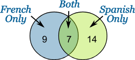 Venn Diagrams and Mutually Exclusive . In a Venn diagram with 2 circles, there are 6 main parts to consider. Use the Venn Diagram on the right to explain how the answer to the probability question was derived. P(English) = 14/40 = 7/20 Total number of students taking English out of the total number of students.