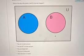 Venn diagram mutually exclusive. Venn Diagram Representation of Mutually Exclusive Events Two events are shown in circles with the rectangular portion. The common portion of two elements gives the intersection of events; these events are called non-mutual exclusive events. Venn diagrams. In order to use Venn diagrams when talking about events, we must first understand the term 'mutually exclusive'. Imagine there are two events: event A and event B. Nov 25, 2021 · November 25, 2021. Are Mutually Exclusive Events Independent Youtube. Solved 3 The Venn Diagram Shows Three Events A B And C Chegg Com. Ppt Mutually Exclusive And Independent Events Powerpoint Presentation Id 313705. Venn Diagrams And Independence Ck 12 Foundation. Solve4x Tutorials Venn Diagrams Part 2 Mutually Exclusive Events Youtube. Hence A and B are mutually exclusive events, as shown in the following Venn diagram. Addition Law of Probabilities. For the example under consideration: Note: In general: Consider the experiment of throwing a die. As usual: Let the events be defined as follows: A = the event that an even number is obtained; and