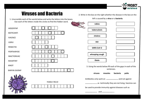 The bacteria and virus Venn diagram graphic organiser is a great way for students to compare and contrast these two microbes. Includes two versions: Version 1. Students cut and paste labels onto the correct part of the Venn diagram. Version 2. Students write the correct statement into boxes on the Venn diagram.