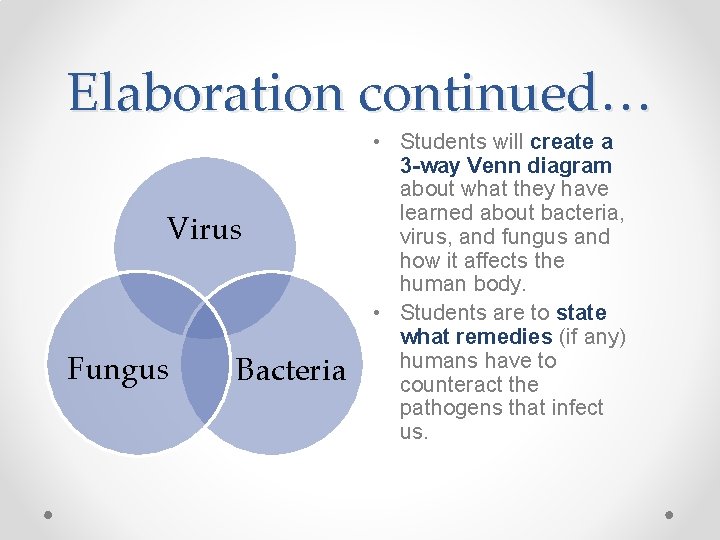 Students will play a vocabulary game and then create a group Venn diagram to assess prior knowledge about bacteria and viruses. This activity offers a hands-on variation of a traditional Venn diagram. It can be used in different ways, although I used it as a preassessment, discussion tool.1/31/ Venn diagram - viruses, bacteria & fungi 2/1 ...