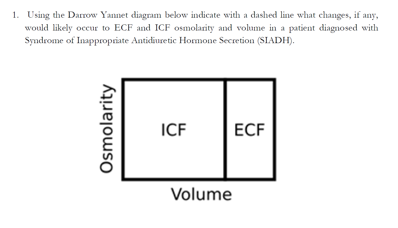 A Darrow Yannet diagram is a schematic used in physiology to identify how the volumes of extracellular fluid and intracellular fluid alter in response to conditions such as adrenal insufficiency and SIADH . It was developed in 1934 by Daniel C. Darrow and Herman Yannet pediatricians from the Department of Pediatrics, Yale School of Medicine.