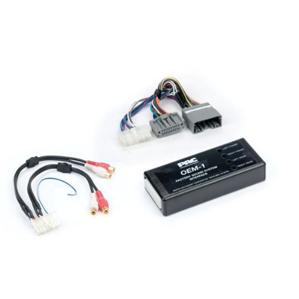 Amplifier integration interface for General Motors vehicles. Amp up your listening pleasure, easily add aftermarket amplification to your 2003 - 2013 General Motors factory radio. OEM-1 with a vehicle-specific harness plugs into the vehicle's wiring and offers a 4 channel RCA audio output for adding aftermarket amplification.