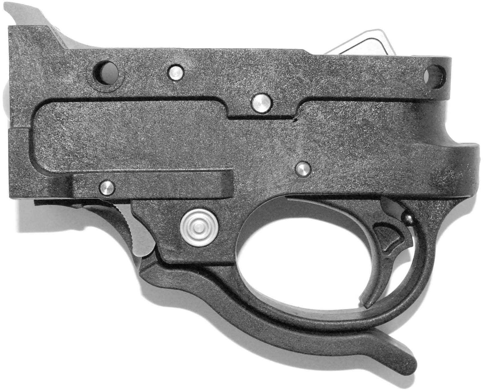 This aftermarket 10/22® trigger is designed to adjust from 1 1/2 pounds to 5 pounds with the turn of a screw. It comes standard in silver or black anodized aluminum with our redesigned auto bolt release and interchangeable magazine lever system. Our single stage trigger guard is CNC machined from billet to Tony's specifications.