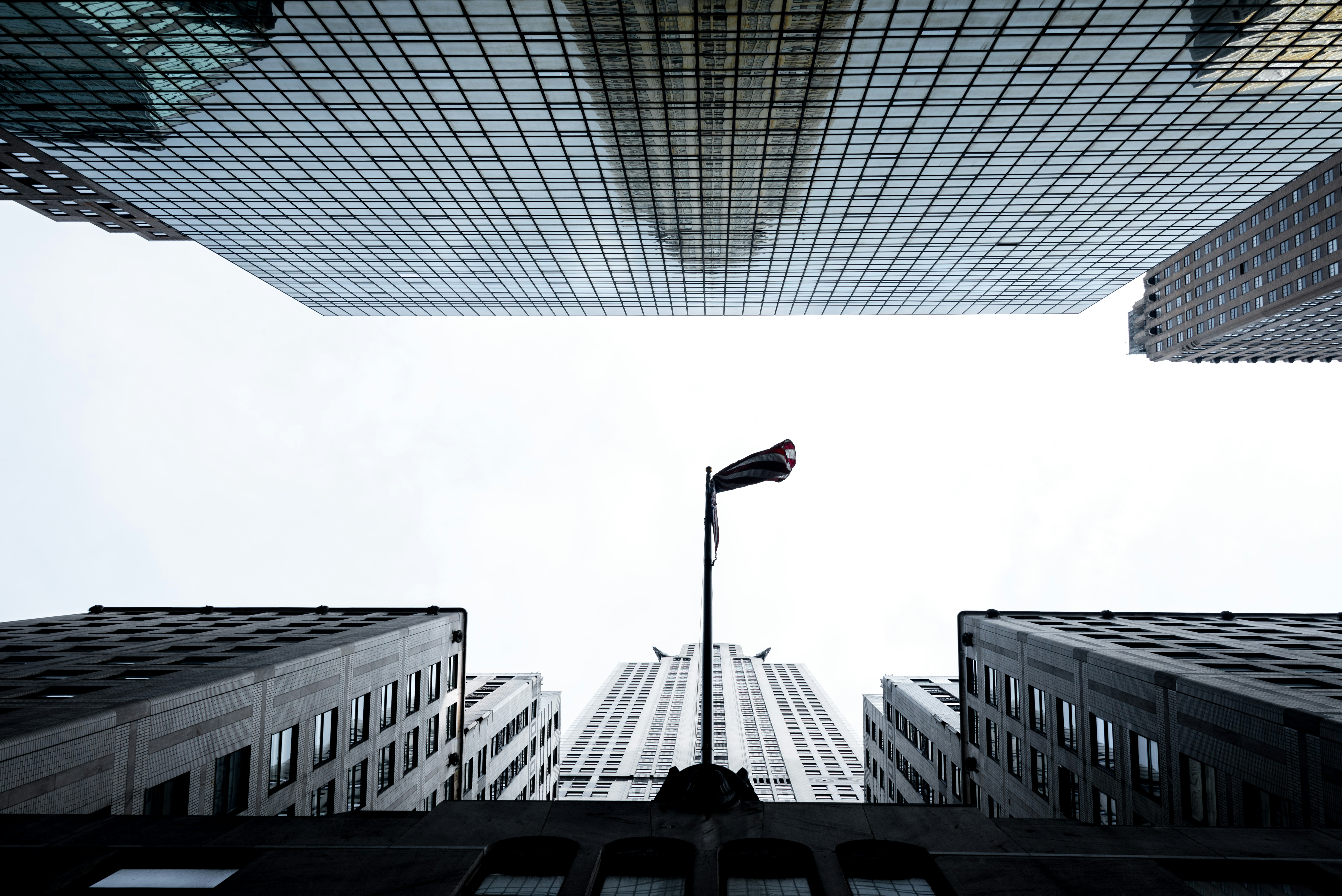 High contrast low angle view of the Chrysler building in New York City, one of the best examples of Art Deco skyscrapers worldwide and considered by many contemporary architects to be one of the finest buildings in the city. Designed by William Van Allen and built between 1928 and 1930, the structure was the worldâs tallest building for 11 months before it was surpassed by the Empire State Building in 1931.