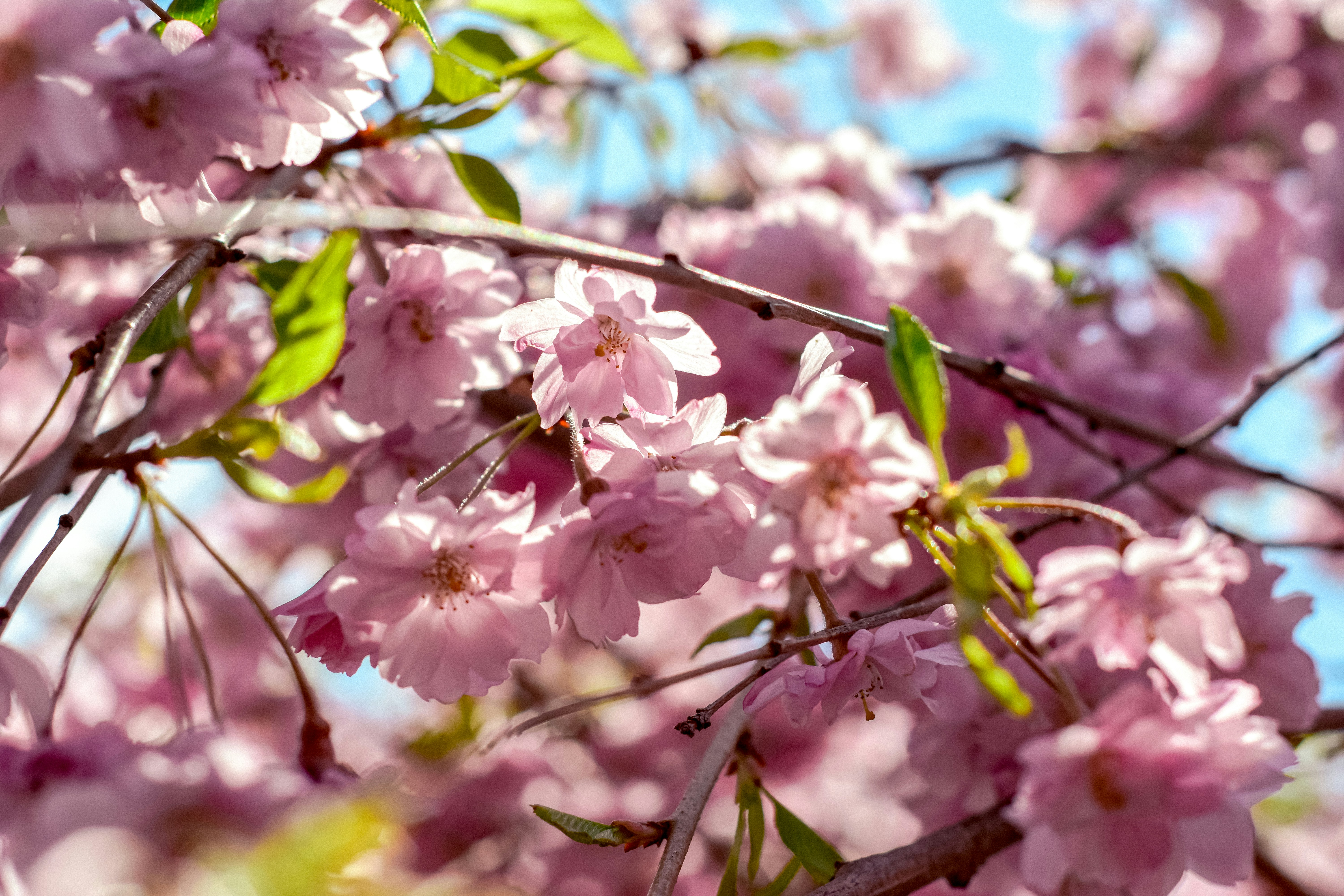 cherry blossoms, spring, michigan, flowers, floral, pink, blue sky, vsco, warm colors, summer, japanese cherry, sakura, low fstop