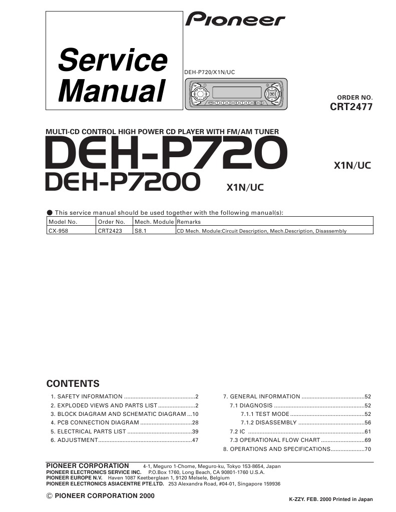 DEH-3200UB English Français Español. Thank you for purchasing this PIONEER product. To ensure proper use, please read through this manual before using this product. It ... Pioneer Electronics (USA) Inc. CUSTOMER SUPPORT DIVISION P.O. Box 1760 Long Beach, CA 90801-1760 800-421-1404 CANADA