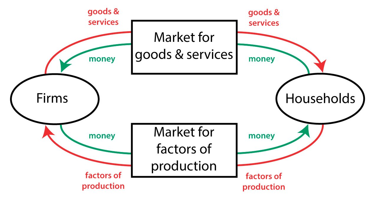 The circular-flow diagram (or circular-flow model) is a graphical representation of the flows of goods and money between two distinct parts of the Based on this definition, we can see that money doesn't flow from household to firms as households offers factor of production for sale but the other way...