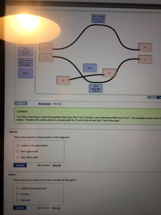 Part B What is the direction of transcription in this ... Part A Identify the the following elements on a diagram of a transcription bubble the labels to their appropriate locations in the diagram. Labels may be 5' 3' DNA template strand DNA coding strand (non template) RNA reset ? help . Expert's Answer. Solution.pdf ...