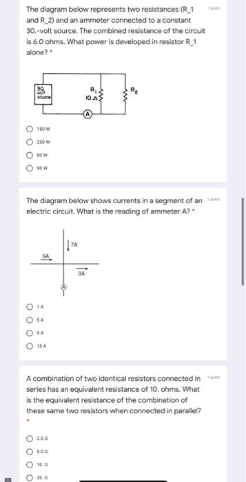 The diagram below shows currents in a segment of an electric circuit. 31 The diagram below shows currents in a segment of an electric circuit. What is the reading of ammeter A? (1) 1 A (3) 9 A (2) 5 A (4) 15 A 32 An electric dryer consumes 6.0 106 joules of× electrical energy when operating at 220 volts for 1.8 ×103 seconds. During operation, the dryer draws a current of (1) 10. A (3) 9.0 ×102 the Electric Machinery Fundamentals - 5th Ed Chapman. Ziafat Shehzad. Download Download PDF. Full PDF Package Download Full PDF Package. This Paper. A short summary of this paper. 17 Full PDFs related to this paper. Read Paper. Download Download PDF. Slide 23-2 QuickCheck 23.6 The diagram below shows a segment of a circuit. What is the current in the 200 Ωresistor? A. 0.5 A B. 1.0 A C. 1.5 A Tables for Physical Setting/Physics, draw a diagram of the circuit in the space provided below. 47. Calculate the current through the lamp. 48. Determine the current in the resistor. 49. Calculate the resistance of the resistor. page 9 Test Review Electricity