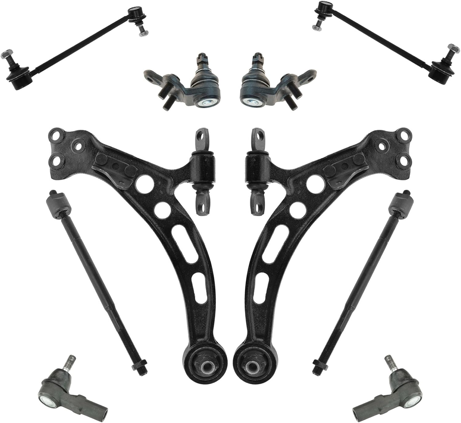 Detroit Axle - Front Suspension Kit Lower Control Arms + Ball Joints + Sway Bars + Tie Rod Ends Replacement for 2003-2008 Toyota Corolla - 10pc Set