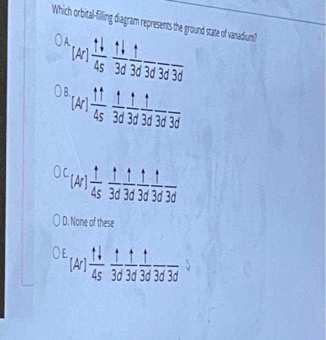 Electron orbital diagram of vanadium [duplicate] - Chemistry ... 26 Feb 2016 — So in vanadium if u excite 1 electron the d orbital will still not be half filled. But 4s orbital will be half filled. Since fully filled ...2 answers · Top answer: Electrons always fill in the lowest energy configuration possible. Cr and Cu, as well as Cu ...Electron configuration from vanadium to chromium? [duplicate]15 Apr 2017Why is the vanadium(3+) ion paramagnetic? - Chemistry Stack ...28 Apr 2012More results from chemistry.stackexchange.com