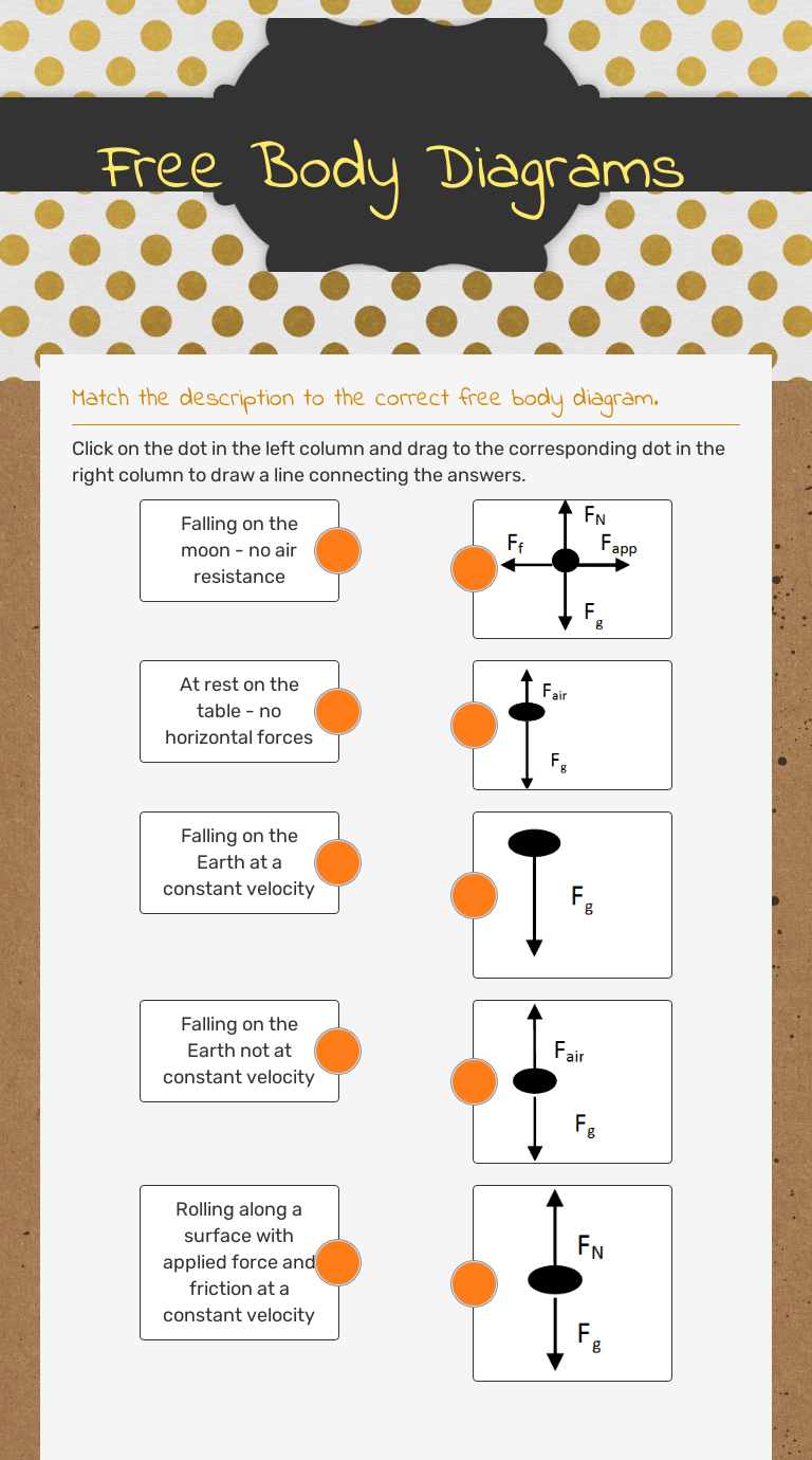 Physics Classroom Free Body Diagrams Answers - XpCourse The Drawing Free Body Diagrams Video Tutorial explains explains how to analyze a physical situation and construct a free-body diagram that shows the types of forces, the direction of the forces, and the relative size of he forces. The video lesson answers the following question: More › More Courses ›› View Course