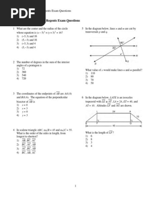 Geometry Multiple Choice Regents Exam Questions www.jmap.org 6 29 In the diagram below of circle O, PA is tangent to circle O at A, and PBC is a secant with points B and C on the circle. If PA =8 and PB =4, what is the length of BC? 1) 20 2) 16 3) 15 4) 12 30 In PQR, ∠PRQ is a right angle and RT is drawn perpendicular to hypotenuse PQ. If PT =x,