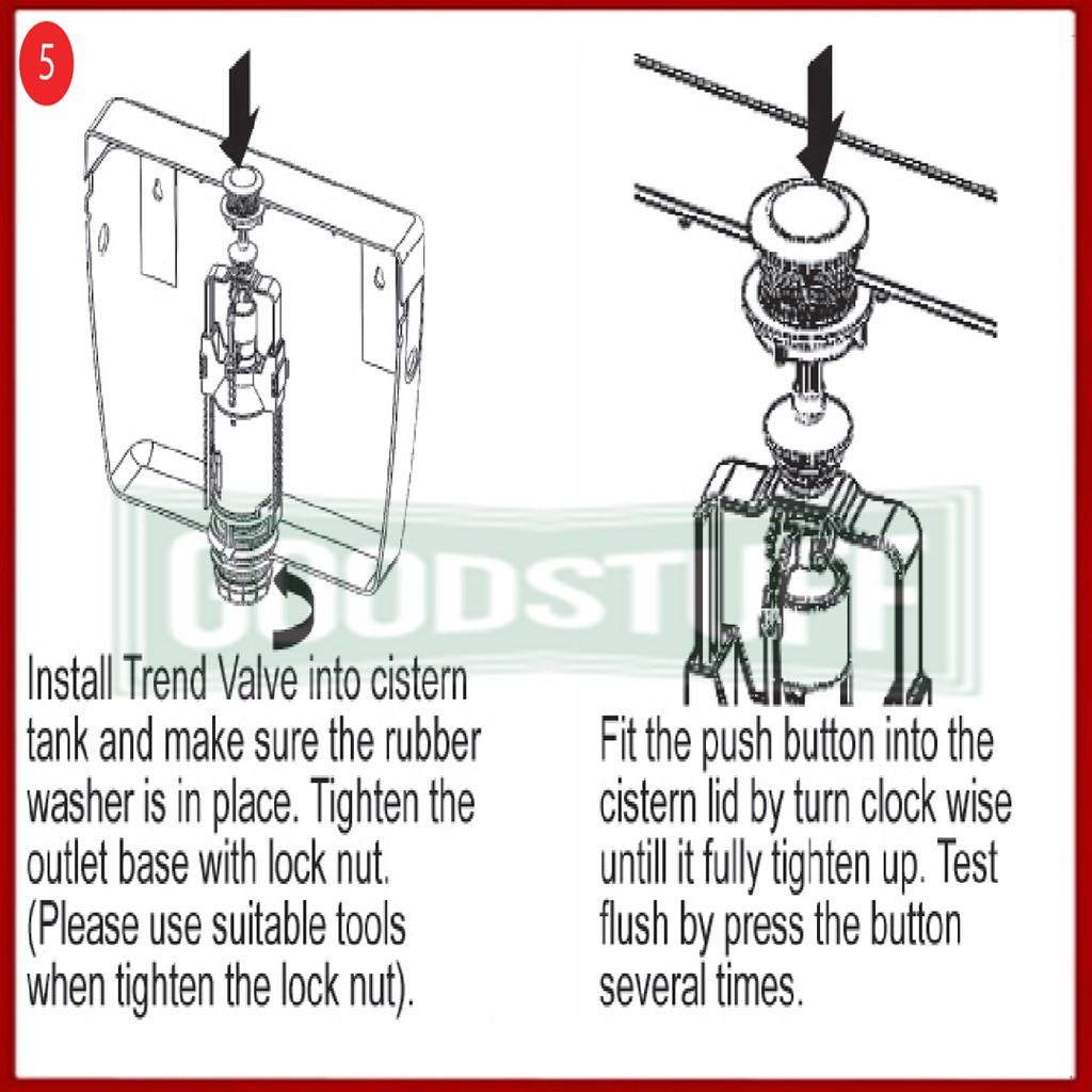 Amazon.com: Push Button Flush Toilet Magic&shell Toilet Button 2PCS 38mm Dual Push Toilets Flush Button Toilet Tank Button with Thread Diameter Silver For Water Valve. 3.9 out of 5 stars. 52. $7.99. $7. . 99. Get it as soon as Tue, Mar 29. FREE Shipping on orders over $25 shipped by Amazon. PDF Installation Instruction for Dual Flush Cistern Fittings SP697 Push rod is too short. 4.Flush valve body is stuck. 3.Flush valve seat does not fit on the flush valve body. 1.Incorrect installation. No flush, low flush or half flush volume Problem Leakage 3.Install again, ensuring both surfaces are clean for a water tight seal. Reason Solution Adjust the push rod length. (see page 4) 2: Flush Valve installation