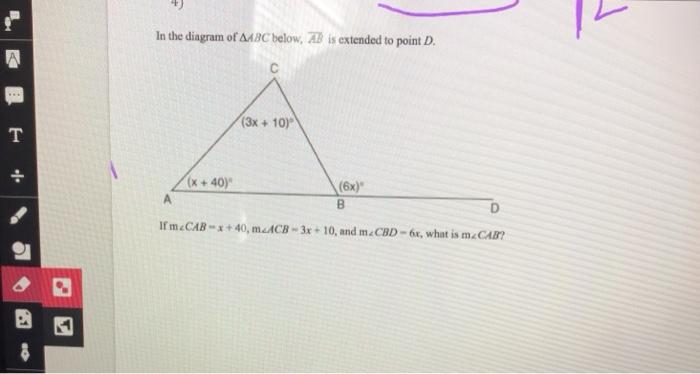 Geometry Regents - January 2013 (examples, worksheets, videos...) 4. In the diagram below, under which transformation is triangle A'B'C' the image of triangle ABC? 3. Line segment AB is a diameter of circle O whose 7. Triangle ABC is similar to triangle DEF. The lengths of the sides of triangle ABC are 5, 8, and 11. What is the length of the shortest side of triangle... PDF Edexcel GCSE Mathematics (Linear) - ANGLES Material Diagram NOT accurately drawn. In the diagram, ABC is a triangle. ACD is a straight liņe. Angle CAB = 50°. Work out the size of the angle marked x. (2 marks). Diagram NOT accurately drawn. PQR is an isosceles triangle. Solved 24. In the diagram, ABC is a quarter of a circle... | Chegg.com Experts are tested by Chegg as specialists in their subject area. We review their content and use your feedback to keep the quality high. Transcribed image text : 24. In the diagram, A'B'C' is an image of ABC, which rule... - Brainly.com We're in the know. This site is using cookies under cookie policy . You can specify conditions of storing and accessing cookies in your browser.