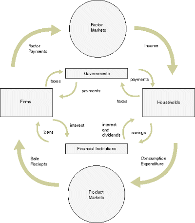 Circular Flow | Principles of Macroeconomics Circular Flow. The circular flow diagram pictures the economy as consisting of two groups — households and firms — that interact in two markets: the goods and services market in which firms sell and households buy and the labor market in which households sell labor to business firms or other employees.To better understand the economy and the NIPAs, consider a simple economy consisting ...