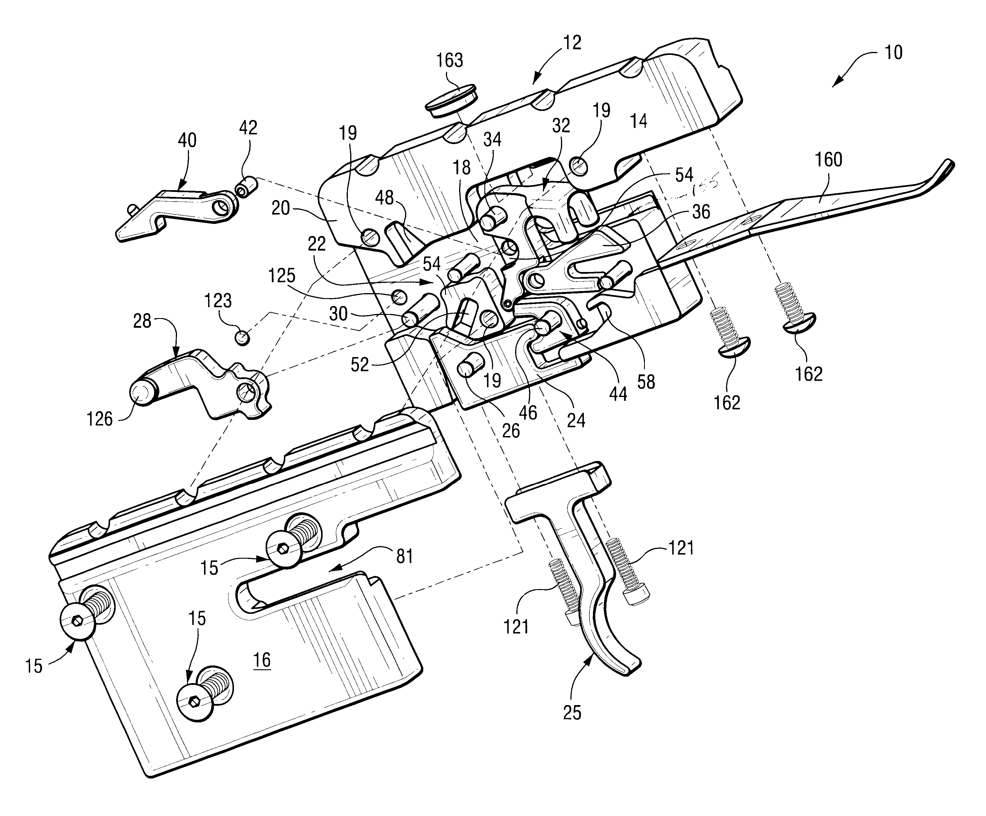 US5649520A - Crossbow trigger mechanism - Google Patents The crossbow trigger mechanism of the invention in a first embodiment comprises a pivotal string release member for releasably retaining a bowstring in a drawn position. The string release member...